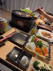 夜は奥様とBBQの残りを室内で楽しみます