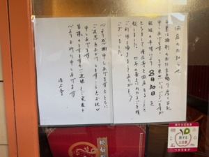 お会計して外出たら張り紙が